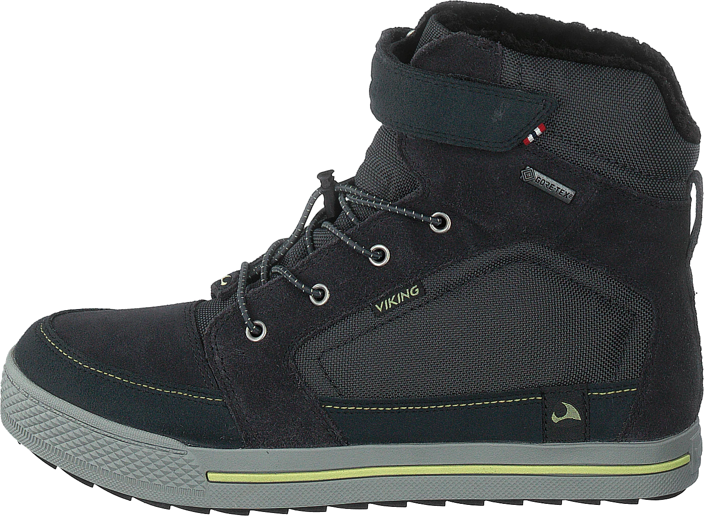 Zing är modern, cool och redo för vintern. Det är en hög sneaker som passar för många olika aktiviteter och har utformats specifikt för det skandinaviska höst- och vintervädret. Konstruktionen av mocka med kontrastfärgade sömmar ger en modern stil och utmärkt hållbarhet. GORE-TEX®-membranet ger vattentäthet och god andningsförmåga i alla väder och det varma fodret ger massor av extra värme. Den elastiska snörningen har snabbjustering som går lätt att dra åt och kardborrebandet i överkant håller värmen inne. Undertill ser sulan ut som sulan på en kanvas-sneaker, men i själva verket är det en gummisula med EVA-mellansula som ger stötdämpning och isolering. Zing är både snygg och praktisk och passar perfekt för aktiva juniorer.